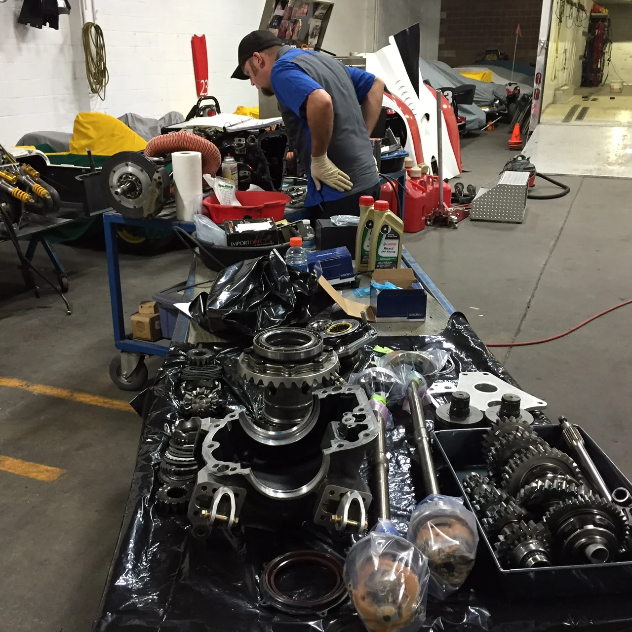 I go down every few days to Jason's new shop in Modesto, it's less than 10 minutes from my home, and check on the progress of the build as the car gets put back together after the winter tear down. I'm posting some pics of where it was a week ago and now today with some serious gearbox work being done. Glad this is him doing the work and not me...this is master mechanic stuff.